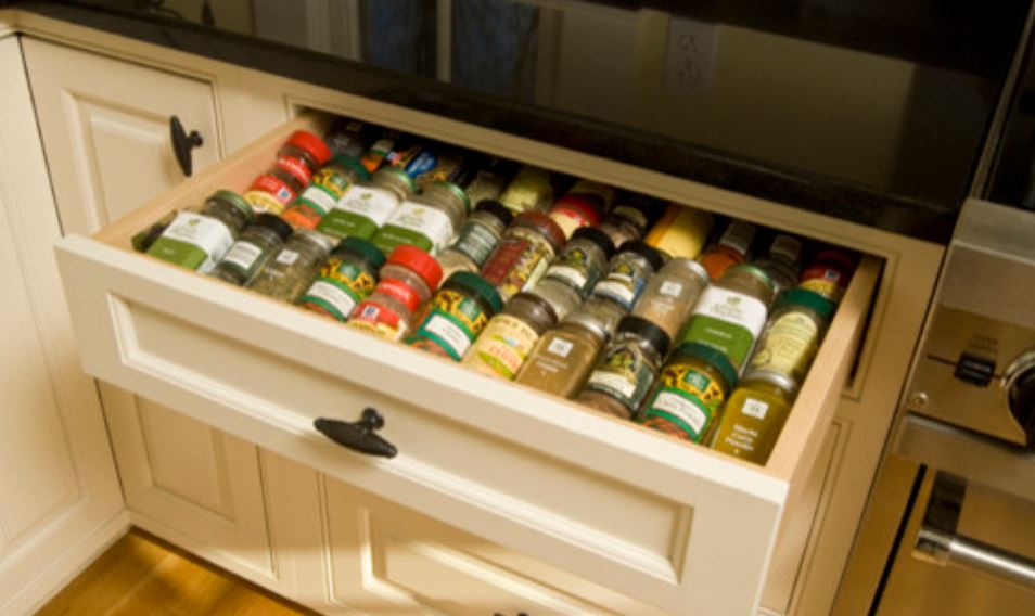 4. Кухонные принадлежности, ножи и специи на каждый день. Будь то настенная система для столовых приборов и специй, органайзер для столовых приборов , подставка для кастрюль или вставка для ящика для специй, ознакомьтесь со всеми удивительными органайзерами, представленными на рынке, которые регулируются и подходят для существующих кухонных шкафов различных размеров. Мелкая бытовая техника, большие кастрюли, миски для смешивания и салатницы хорошо размещаются на открытых полках под кухонными островами или на стеллаже для выпечки, если вы сможете выделить для этого место.