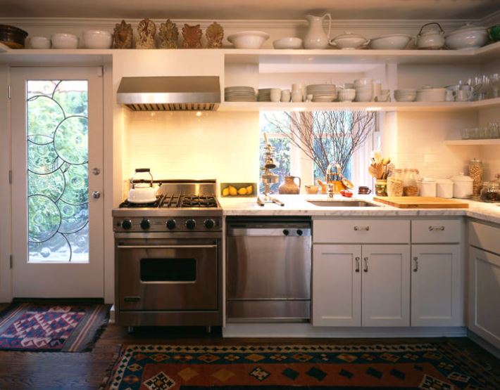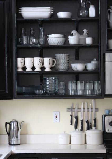 Или снимите дверцы с одного из имеющихся шкафов, чтобы немного расширить пространство и создать декоративный и удобный для доступа повседневные предметы дизайн.