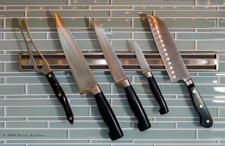 В органайзеры для ящиков поместятся специи стандартного размера, и на рынке представлено множество моделей, регулируемых под размер ящиков. Магнитная планка для ножей, крепящаяся к стене, — отличный способ хранить ножи в удобном и легкодоступном месте, а также освободить место в ящике или на столешнице.