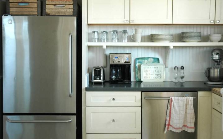 3. Кулинарные книги, вино и большие миски. Если у вас есть шкафчик над холодильником, подумайте о том, чтобы снять дверцы и добавить винную полку или дополнительную полку для кулинарных книг, или даже несколько стильных сервировочных мисок . Обычно это глубокое, неиспользуемое пространство заполняется редко используемыми предметами, которые просто занимают место. Вместо этого используйте это пространство для красивой сервировки.