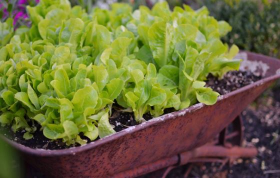 Салатная зелень — ещё один простой вариант для выращивания в контейнерах. У большинства видов корни очень неглубокие, и посадка их в приподнятый контейнер, например, в этот старый вагончик, позволяет им стать украшением сада, а не часто игнорируемыми низкорослыми растениями.