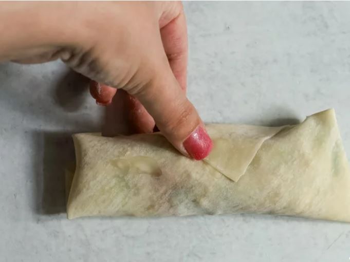 Заверните края яичного рулета.