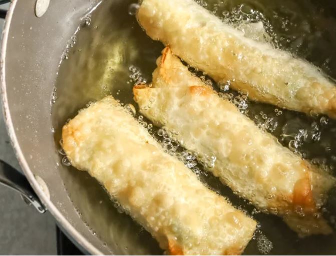 Начинка для этих яичных рулетов готовится из простой смеси куриного фарша, замороженных овощей для жарки, имбиря и чеснока. Для приготовления блюда вам также понадобятся яичные рулеты и растительное масло для жарки, а для подачи можно приготовить кисло-сладкий соус.